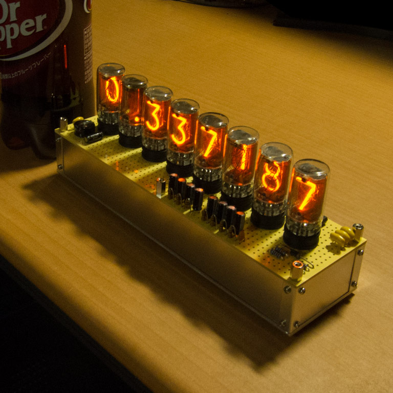 もうひとつのダイバージェンスメーター製作用基板セットは、実際にダイバージェンスメーターを製作するのに使った基板の余りをお分けします。 天板(未塗装)、ニキシー管基板、電源+制御基板の3枚セットです。 回路図と部品リストがつきます。制御用のソフトウェアは来年早いうちに、回路と基板のデータとともに公開予定です。 製作マニュアル等はつきませんので、自力で実装できる方向けです。 ニキシー管基板が対応するニキシー管は、NL-902 または NL-842 です。制御基板と天板は、IN-14 や IN-8 など他のニキシー管にも使えます。
