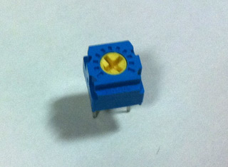 - 液晶のコントラスト調整用の抵抗器です。手で回すタイプではなく、ドライバで回すタイプのものです。電子部品屋さんならどこにでもあります。